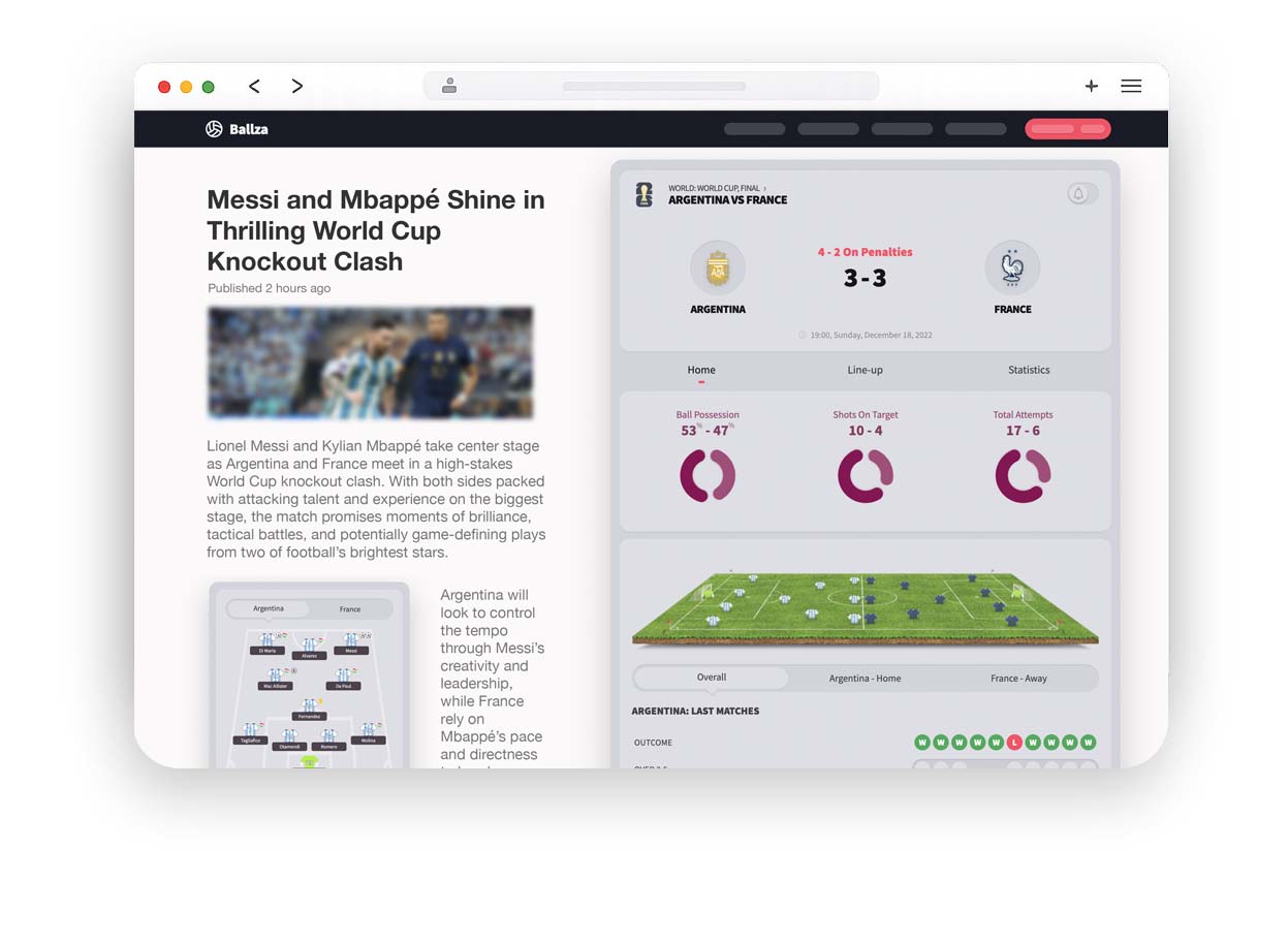 World Cup coverage rarely lives in a single place. A homepage might show the overall tournament picture. An article might focus on a specific match. A match preview page might need a small live score module so readers can follow the game as it happens.